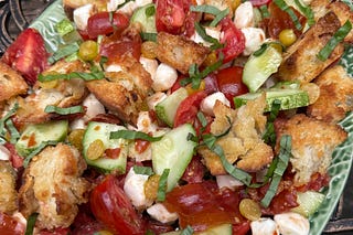 Summer Garden Panzanella with Ground Cherries & Crispy Prosciutto